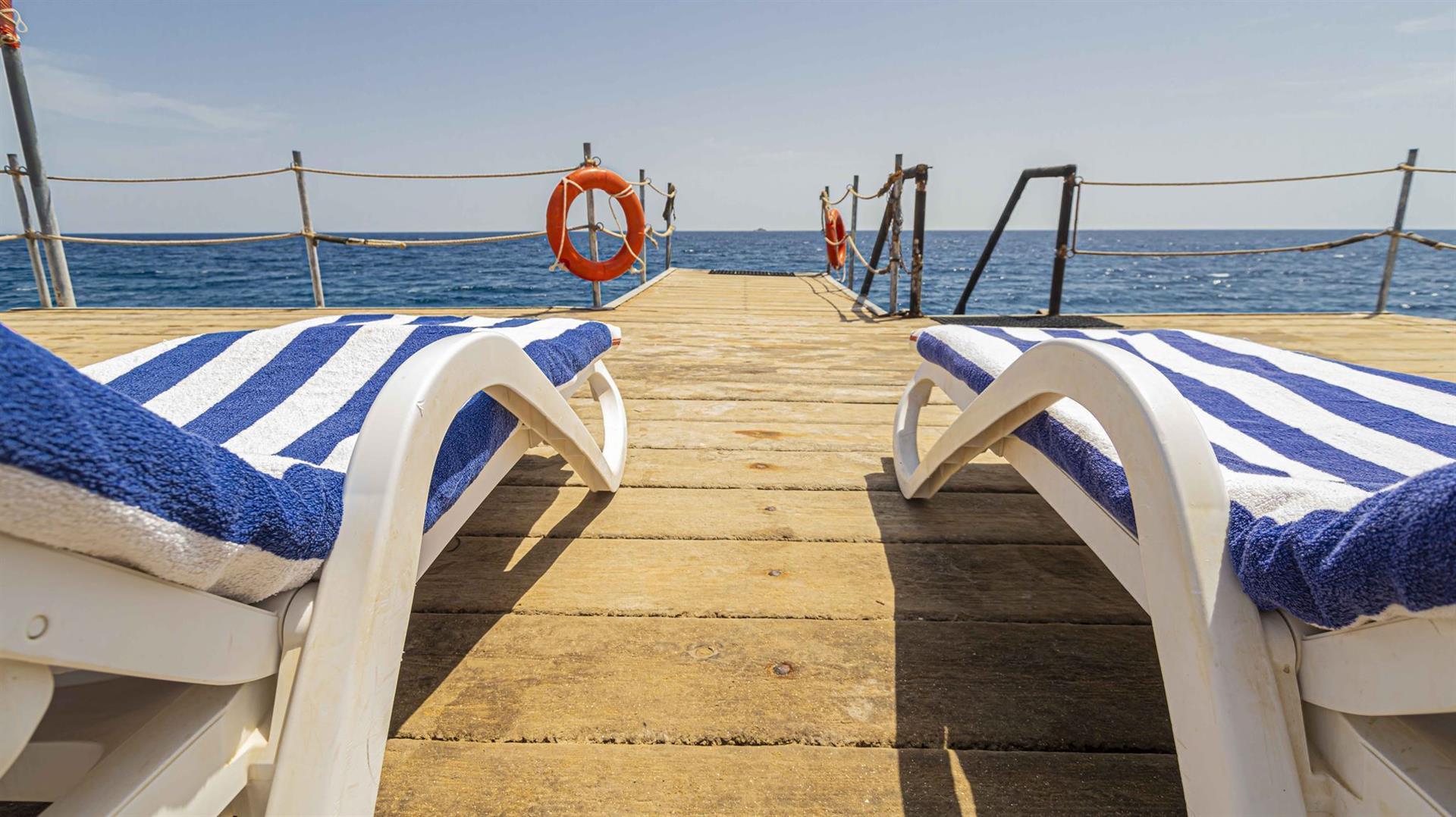 Napernyők, napozóágyak, strandtörölközők ingyenesen állnak rendelkezésre.
