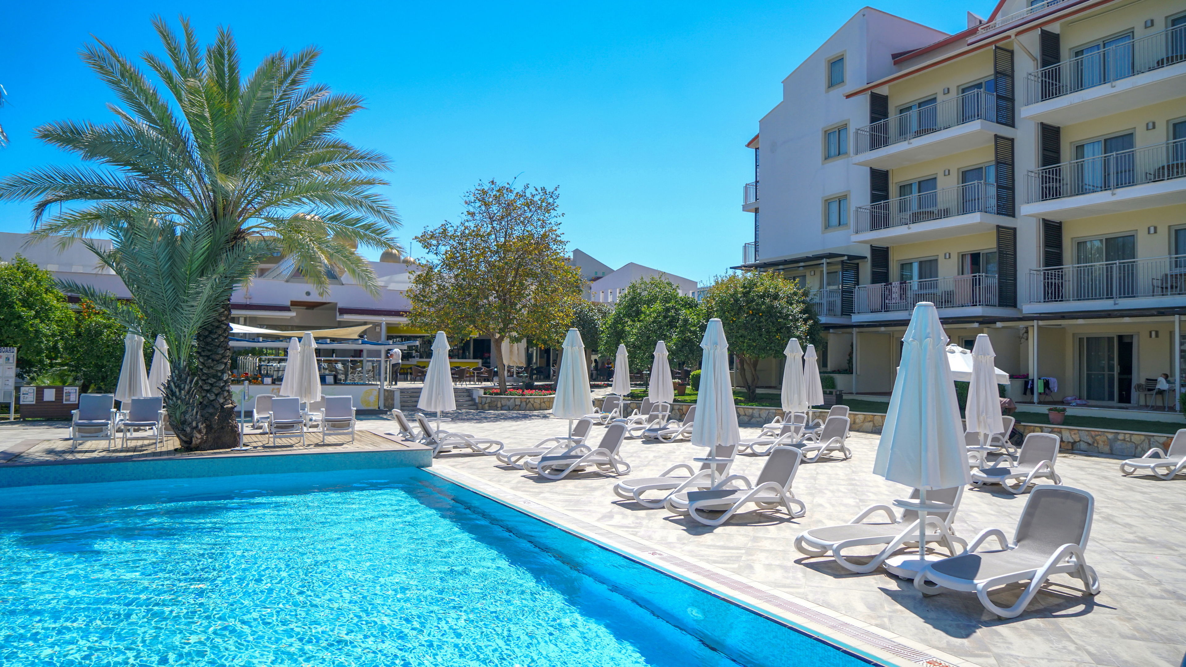 A hotel 2007-ben épült. A vendégek 254 lakosztály közül választhatnak. Az internet-hozzáférést WiFi (díjmentesen) biztosítja. A vendéglátó egység magában foglal egy éttermet, egy kávézót, egy bárt és egy strandbárt. Vásárlási lehetőséget kínál egy élelmiszerbolt, valamint további butikok. A gyerekek kedvükre szórakozhatnak a játszótéren. Rendelkezésre áll továbbá az autókölcsönző, az orvosi ellátás, a mosodai szolgáltatás és a fodrászat. Az üzleti tevékenység és kommunikáció maximális támogatása érdekében rendelkezésre áll egy faxgép is.